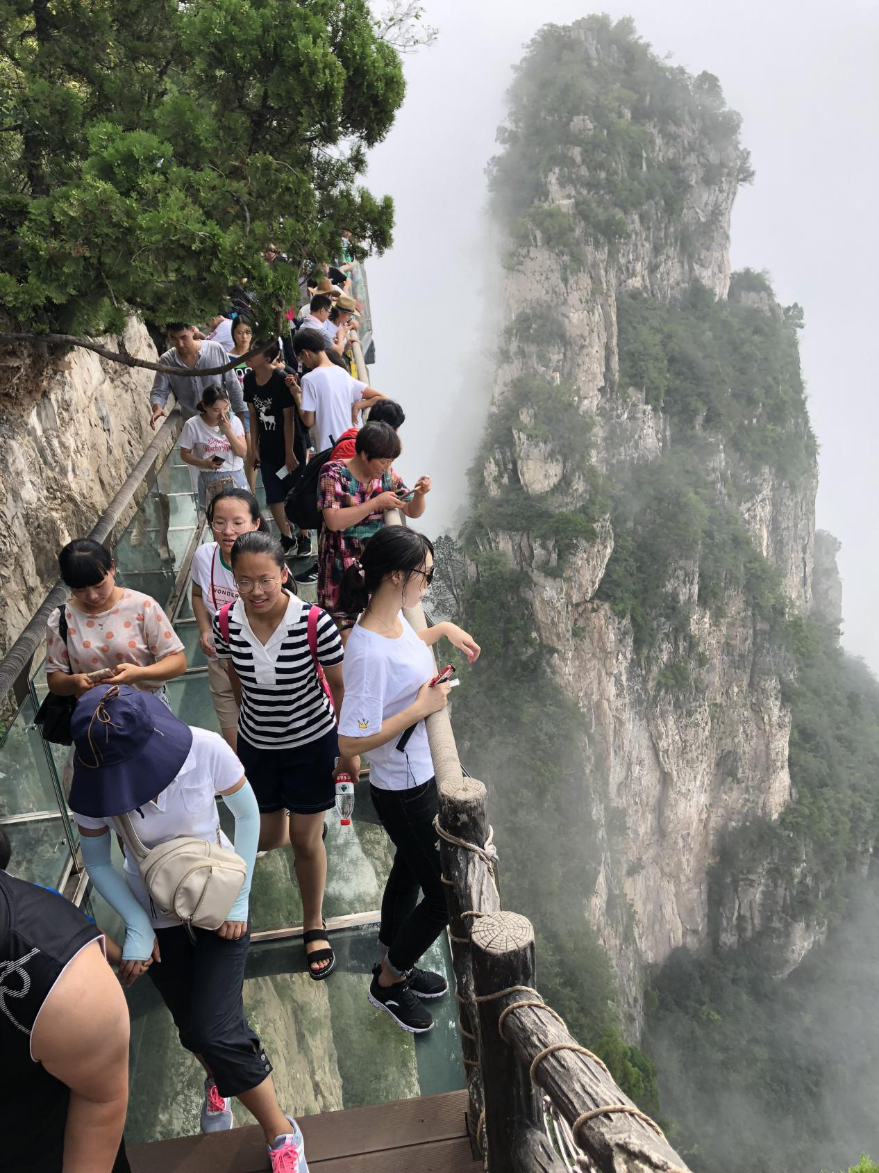 根據(jù)行程安排,大家先后游覽了“華夏第一秀水”小寨溝、“華夏第一奇峽”紅石峽,以“三步一泉,五步一瀑,十步一潭”而著稱的老潭溝及野生獼猴保護區(qū)獼猴谷,第二天大家去感受萬丈凌空的驚險、欣賞群峰林立的美景--云臺山玻璃棧道,并登上千階的云梯棧道——海拔1308米的茱萸峰頂,途中坐車經(jīng)過了14個疊彩洞,當(dāng)天早上霧氣彌漫,體驗了前所未有的云中乘車。迷人的自然風(fēng)光讓大家流連忘返。