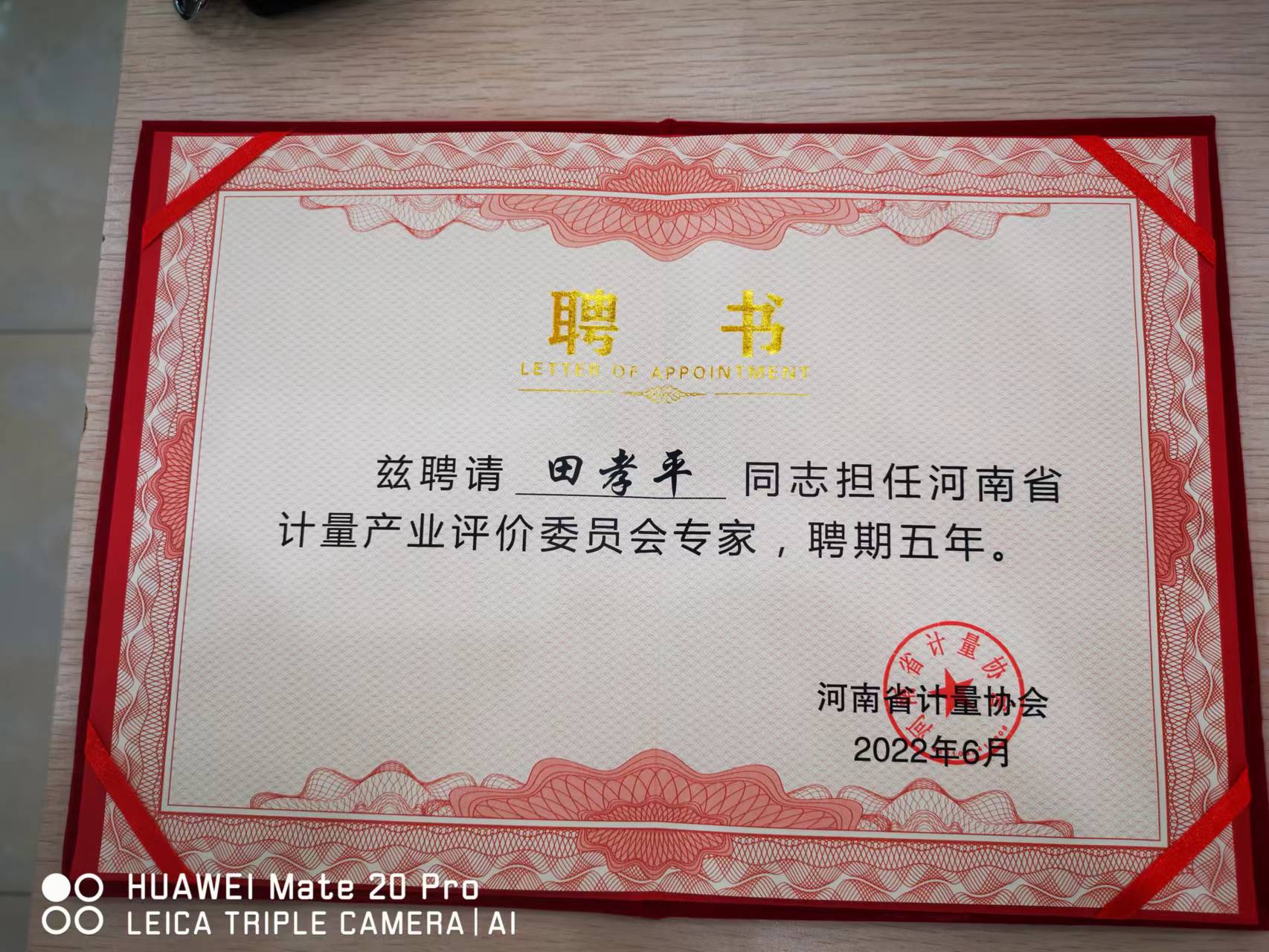 恭賀鄭州貫奧儀器儀表有限公司田孝平總經(jīng)理被聘請為河南省計(jì)量產(chǎn)業(yè)評(píng)價(jià)委員會(huì)副主任委員及委員會(huì)專家。
