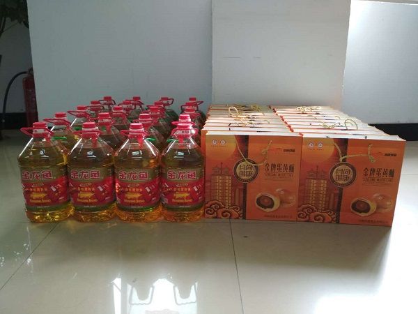今年國慶節(jié)和中秋節(jié)正好是趕到了一起,所以公司領導也是提前準備了節(jié)日福利,為大家送去祝福。今年的福利包括一桶食用油和一盒金牌蛋黃酥月餅,充分體現了公司領導對員工的關心和祝福。