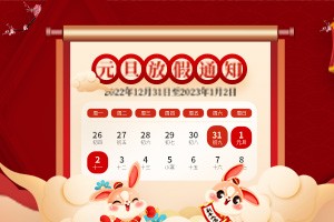 2023年元旦佳節(jié)將至,首先向全體員工致以節(jié)日的問候,為了大家能度過歡樂、祥和、平安的節(jié)日,特提醒全體人員注意以下幾點: 1.2023年元旦放假時間:自2022年12月31日至2023年1月2日,放假3天。2023年1月3日(星期二)照常上班。 2.各部門在節(jié)前要組織一次安全檢查,杜絕一切安…